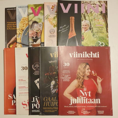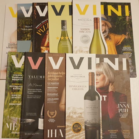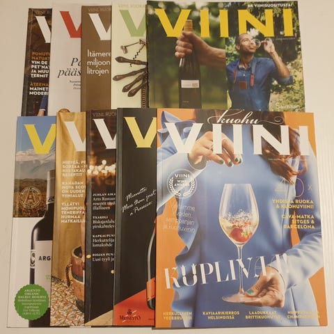 Myynnissä on useita vuosikertoja VIINI-lehteä.