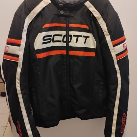 Otsikon mukainen Scottin ajotakki, koko XL. Kunnoltaa hyvä. Sisävuoressa hiukan toppausta ja vedenpitävä kalvo, irrotettavissa. Hyvät tuuletus luukut kesän helteitä ajatellen. Olkapää- ja kyynärpääsuojat. Selkäsuojalle tasku olemassa, itse suojaa ei tule mukana.