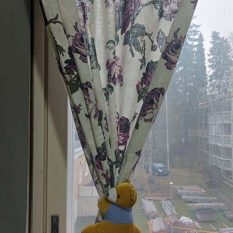 A pair of LENDA curtains in off-white, that perfectly dim daylight. They can be used on a rod or with a rail. 100% cotton, machine washable, max 40°C. A BEKRÄFTA curtain rod in white (120-210 cm, 19 mm) is available and included in the price. Not very easy to take pictures of curtains with back light coming through the window, so included in the ad are a couple of pictures from IKEA website.