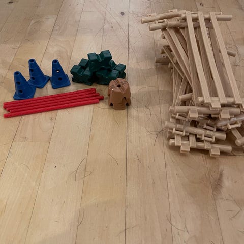 Schleich leikkisetti, jossa estehyppyyn liittyviä tarvikkeita.