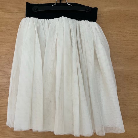 More&More-merkin naisten beige tyllihame koossa 36 (S). Vyötärö joustaa ja vastaa mielestäni hyvin kokoaan. Tyllin alla alushame. Kunto erinomainen.