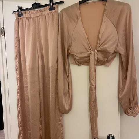 Naisten housuasu, johon kuuluu lyhyt, lyhythihainen paita ja pitkät housut. Värinä vaalean keltainen. Housuissa on joustava vyötärö kiristysnyörillä sekä suorat lahkeet. Yläosa on lyhyt ja väljä malli. Sopii arki- ja vapaa-ajan käyttöön. Paidassa ja housuissa lukee "oh honey" teksti. Vaatteiden merkki on FB SISTER / Fishbone sister.