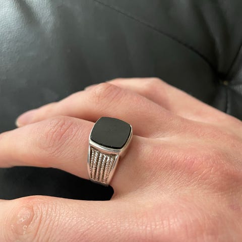 - Materiaalina 925-hopea ja aito onyksi kivi.