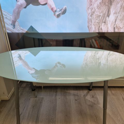 Lasibaaripöytä pukkijaloilla, korkeussäädettävä