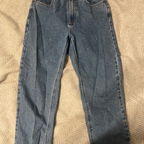 Bootcut-malliset farkut. Vähälle käytölle jääneet. Lahkeita lyhennetty, joten olisikohan pituus nyt 28 tuumaa. Langanpako lahkeessa takana (kuvassa).