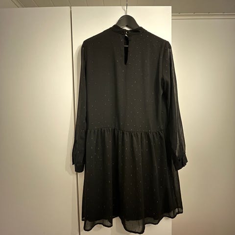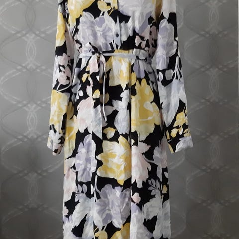 Kuvan valkoinen pitkä mekko, koko 38. Mikon pituus kainalosta helmaan 118 cm