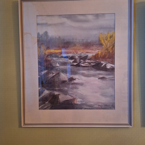 Vesivärityö tunturista “Pallas/Äkäslompolo”. Koko 30*40 (kehyksineen), signeerattu, Pekka Poukka 1991.