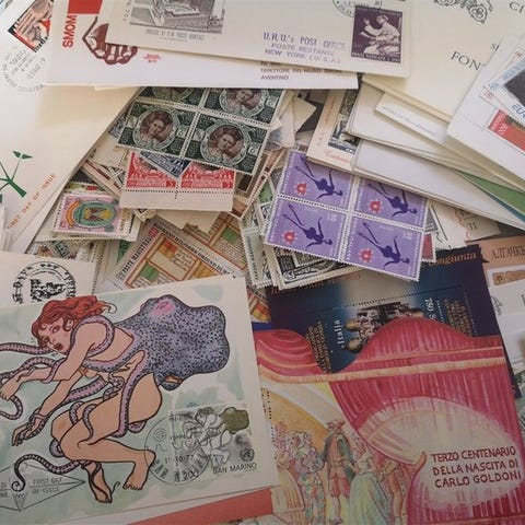 Varastossa noin 1000 leimattua ja uutta Italian alueelta peräisin olevaa MNH-postimerkkiä**. Uudet postimerkit ovat ehjiä ja leimattujen kohdalla on liima. Vahvistamattomia leimoja on kuningaskuntien, siirtomaiden, miehitysten, Vatikaanin tasavallan, San Mainon ja SMOM:n leimoja. Lisäksi 100 kappaleen erä FDC-kuorien, MAXIMUM-postimerkkien ja ehiöiden välissä Italian alueelta. Kaikki on valokuvattu, kaikki on luetteloitavissa; tarkista kuvaukseen kuuluvat kuvat – hauskuus taattu.