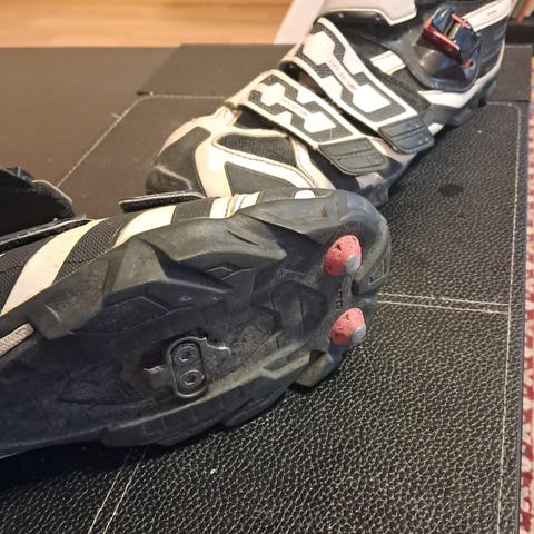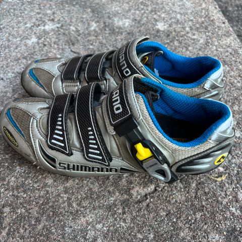 Shimanon lukkopoljinkengät jossa vähän pidempi varsi. Kunto hyvä. Sisäsivuilla vähän likaa eturattaasta. Lähtee varmasti jollain aineella jos jaksaa hinkata.