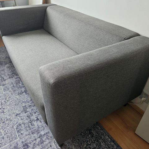 Muutaman vuoden ikäinen harmaa sohva etsii uutta kotia muuton vuoksi. Sohva on kolmen istuttava, mutta silti melko kompakti pienempäänkin tilaan. Tyynyt ovat hieman menettäneet alun pinkeyttään mutta ovat silti mukavat istua. Pienet kauneusvirheet kuvissa