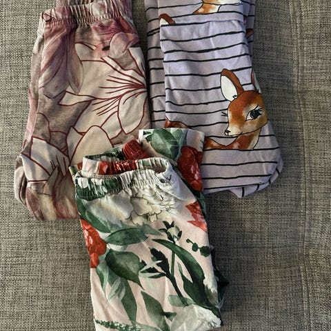 Kaikki meille uutena tulleet ja erinomaisessa kunnossa. Kukkahousut vain käyttöönottopesty. Kuviolliset kokoa 80 ja yksisiväriset kokoa 86. Ovat kuitenkin samaa koko kaikki ja sopivimmat juuri koossa 80/86.