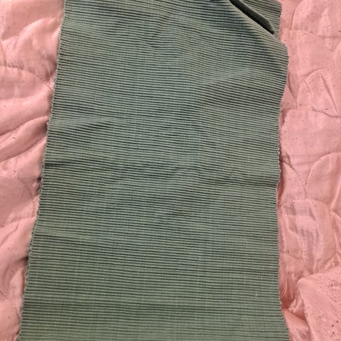 Raidallinen kaitaliinabeigeä kangasta. Liinassa on vaakasuuntaiset valkoiset raidat. Sopii esimerkiksi pieneen kattaukseen.