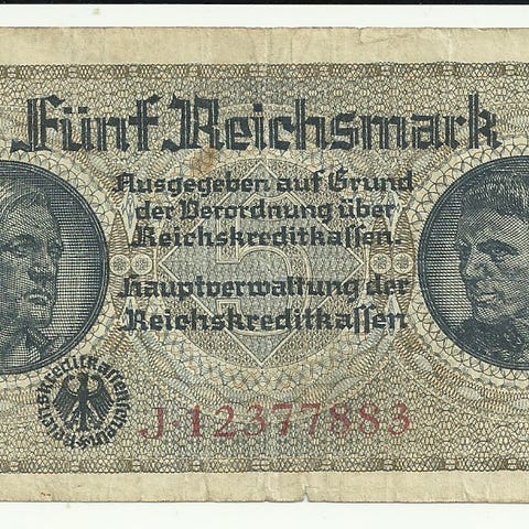 Saksan valtakunta 5 Reichsmark seteli Käytössä 1940-1945