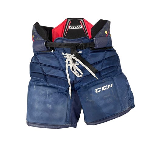 Kuvan mukaiset pro tason housut joutavana. Koko ehkä SR S-M, merkintä kulunut (isommat kuin esim Bauer SR M). Hyvässä kunnossa ja suojaavat. Pari miinusta löytyy kuvista.