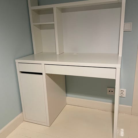 IKEA Micke-työpöytä hyllyillä valkoinen