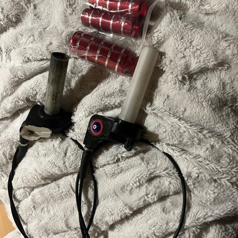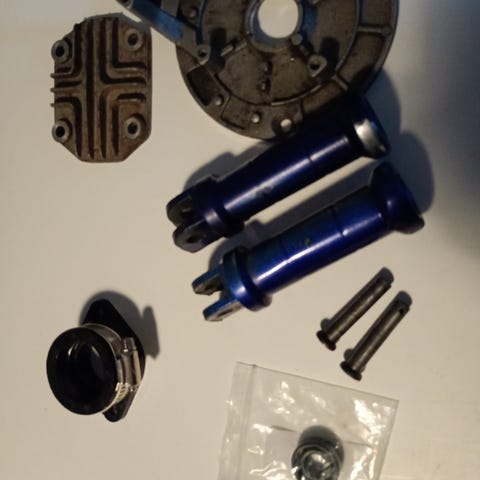 Kuvassa on moottorin tuunaus setti johon kuuluu nokkarattaan kansi, venttiilien kannet, öljytikku, venttiilikopan kansi ja sivulle kannen suoja kaikki nuo ovat koneisettua alumiinia ja käyttämättömiä ja mukaan kuuluu vielä punainen vaihdepoljin ja punainen bensahana. Tule rohkeasti yv.