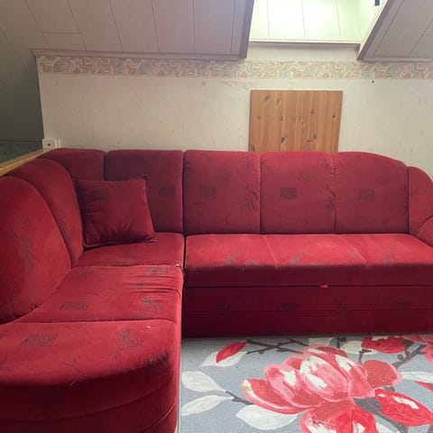 Annetaan tilanpuutteen vuoksi rakas sohva eteenpäin. Muuten hyvässä kunnossa mutta osa napeista tippuneet. Sohvan sisällä säilytys tilaa ja toimii myös vuodesohvana. Sohva on painava joten omat kantajat mukaan.