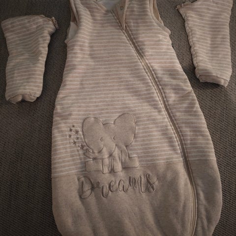 Lämmin talviunipussi irrotettavilla hihoilla. Kankaassa havaittavissa hieman nukkaantumista.
