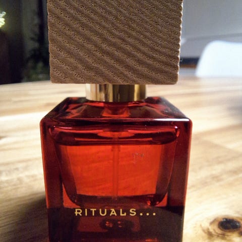 Rituals Fleurs de l’Himalaya eau de parfum -hajuvesi. Pullon koko 15 ml (0,5 fl. oz). Tuoksu on pakattu lasiseen neliönmuotoiseen pulloon, jossa on puinen korkki. Sopii päivittäiseen käyttöön hajuvedeksi. Vain muutaman kerran käytetty.