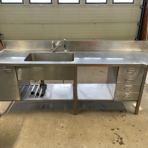 Rst-pöytä altaalla,käsisuihkulla ja kaapistolla.