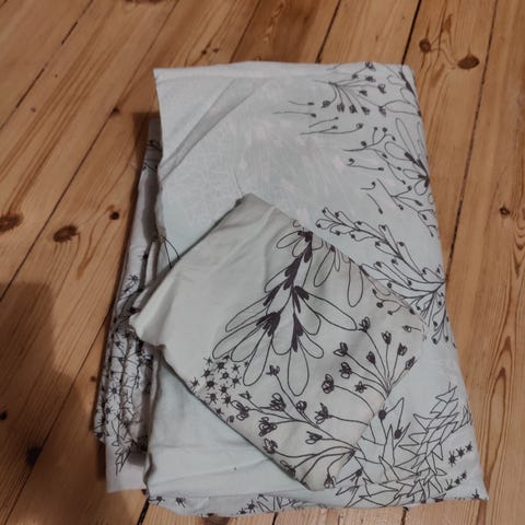 Luulisin että kuvion nimi on Anni, siniset/turkoosit kukat. Kaksi peiton lakanaa ja kaksi tyyny lakanaa + kaksi ylimääräistä tummemman sinistä tyynylakanaa. 100% puuvillaa. Myydään vain settinä yhdessä ja nopea nouto etusijalla.