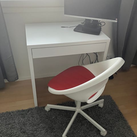 Hyvä toimiva Ikealta hankittu työpöytä. Pinnassa maalijälkiä kuten kuvassa näkyy.