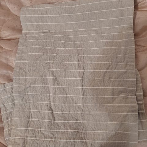 Vihreä kaitaliina. Kapea pöydän keskelle asetettava liina, jossa on hillitty raidallinen tai ribattu pinta. Sopii käytettäväksi esimerkiksi ruokapöydän tai sivupöydän kattauksissa ja sisustuksessa.