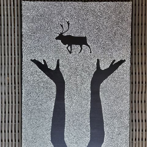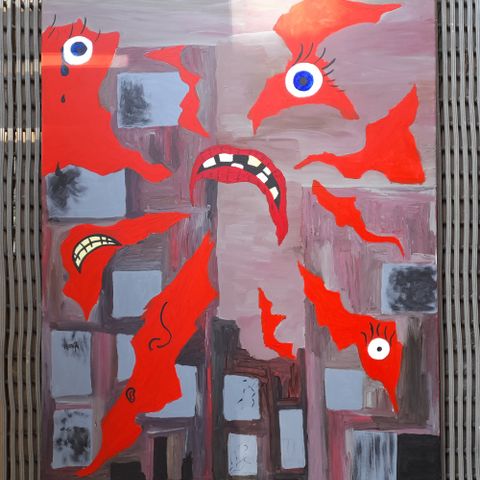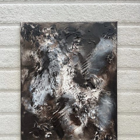 Teos on syntynyt ilman tarkkaa suunnitelmaa. Pohjavärin päälle maalatut mustat viivat seuraavat tunnetta, eivät sääntöjä. Jokainen koukero on jälki hetkestä, ja jokainen katsoja näkee teoksessa jotain erilaista.