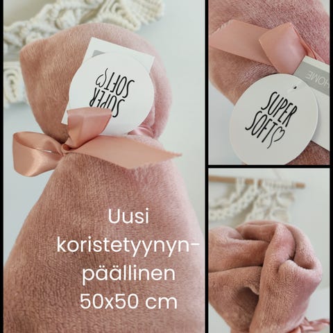 Uusi, käyttämätön koristetyynynpäällinen 1 kpl, 50x50 cm. Ihanan pehmeä. Solmittu nauhalla, voi hyvin antaa vaikka lahjaksi.