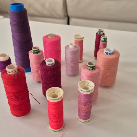 Omista ompeluksista jääneitä ompelulankoja, enemmän tai vähemmän käytettyjä.