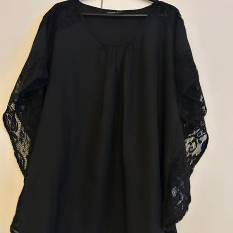 Bodyflirt pusero naisille, koko 48. Pusero on musta ja siinä on monivärinen kukkakuvio. Mallissa on väljä leikkaus ja pitkät, läpikuultavat hihat. Pääntie on leveä ja siinä on nauhakiinnitys edessä. Vuorikangas ja kuminauha helmassa. Kai-kai noin 60cm