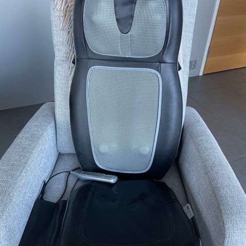 OBH Nordica hierontatuoli. Kaukosäätimellä voi säätää hierontaohjelmia ja -alueita. Pientä kulumaa.
