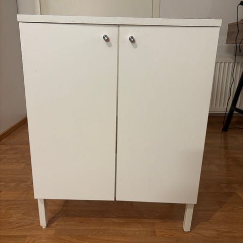 Annetaan purkukuntoisena, ei pestynä. Kaapissa hieman kosteusvauriota toisessa kyljessä. Seinälle menevät kiinnityskiskot mukana. Ei muita asennustarvikkeita.