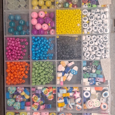 Itse tehty helminauha avuksi lapselle matematikkaan. Nauhassa 100 helmeä, eroteltu erivärein 10 helmen värein kahdella värillä.