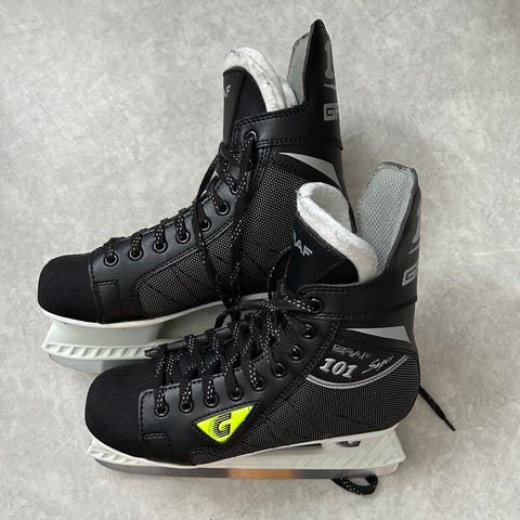 Graf jääkiekkoluistimet, koko 45. Väri punavalkoinen. Luistimet on tarkoitettu jääkiekkoon. Perinteinen nauhakiinnitys ja teräsrungot jääkiekkokäyttöön. Soveltuvat aikuiselle, jonka kengänkoko on noin 45.