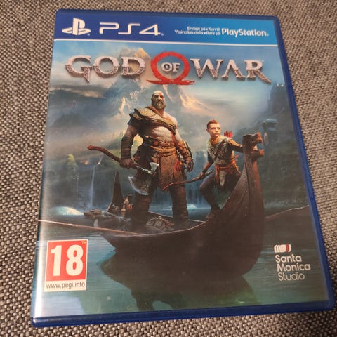 Sony God of War Playstation 4 -peli. Ikäraja 18. Pelilevy PS4-kotelossa. Toimintaseikkailupeli, joka sijoittuu mytologiseen fantasiamaailmaan ja sisältää yksinpelikampanjan.