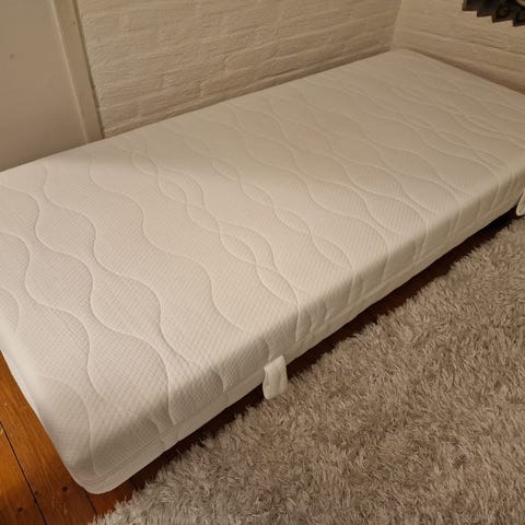 IKEA ESPEVÄR sänky ja Asko Bonnell joustinpatja valkoinen