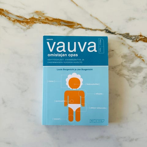 Myydään uudenveroinen Vauva omistajan opas -kirja. Eläimetön ja savuton talous.