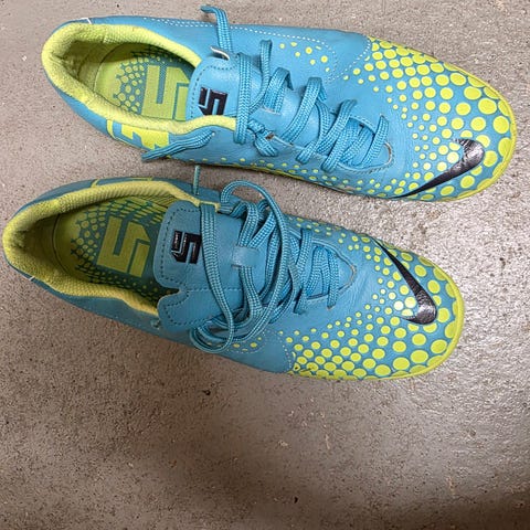 Pelattu sisätekonurmella jalkapalloa niin pohjat mustuneet.