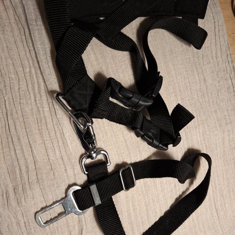 Myydään koiran turvavyövaljaat, koko M, väri musta, merkki dogit. Muuten täysin kunnossa mutta yhden remmin päässä on hiertymä materiaalissa.