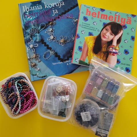 Crystal Tec helmipakkaus monivärinen. Läpinäkyvässä rasiassa on useita lokeroita erivärisille pienille helmille sekä kirjainhelmille. Mukana on kaksi Crystal Tec -korunarurullaa (0,7 mm), pienet sakset sekä metallisia korunosia, kuten renkaita ja lukkoja. Sopii esimerkiksi rannekorujen, kaulakorujen ja muiden helmikorujen askarteluun.