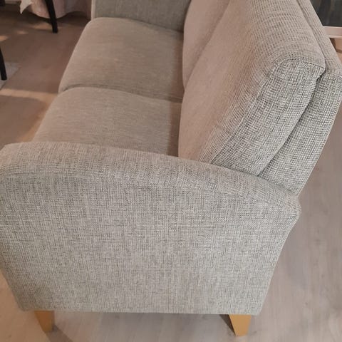 Myydään nätti beige Jyskin sohva ✨ Sohvassa on käytön jälkiä hieman, joka näkyy kuvissa, mutta yleisilmeeltään on siisti eikä tahroja ole.