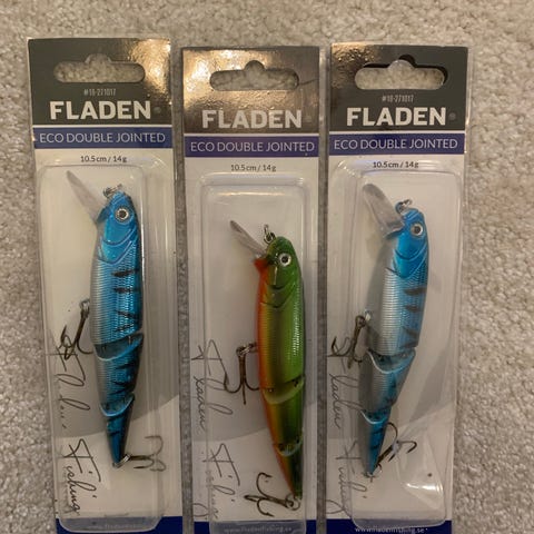 Fladen Eco Jointed Fat vaappu, pituus 8 cm ja paino 14 g. Nivelrunkoinen uistin, jossa kolmihaarakoukut ja lukkoleikari.