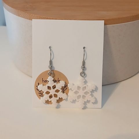 Virkatut hopean väriset lumihiutaleet noin 3-4cm pitkä. Mmm