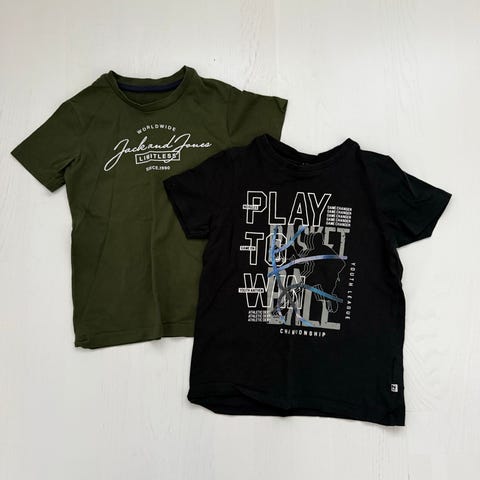 Värikäs 128 koon paitapaketti. Sis. kolme pitkähihaista Villervalla, Name it ja E-bound, Divisionin fleecetakin, punaisen pikeepaidan (Hampton Republic) sekä Lindexin kauluspaidan painonapeilla.