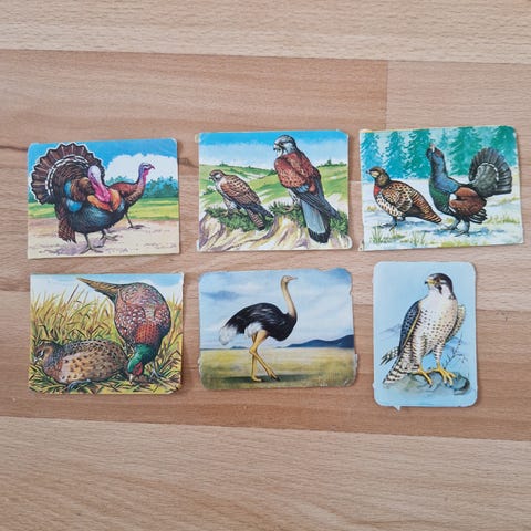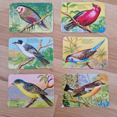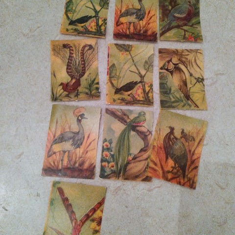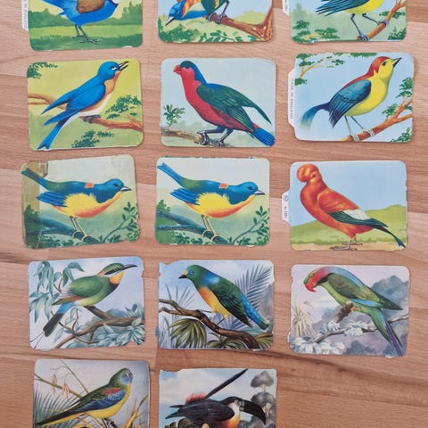 Hyväkuntoiset lintu kiiltokuvat. Noin 80 v vanhat