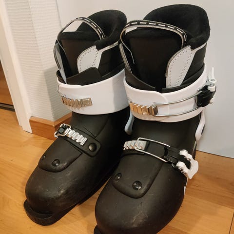 Lange-merkkiset laskettelumonot. Joitakin käytönjälkiä ulkopuolella. Yleisilmeeltään siistit. Koko 225.