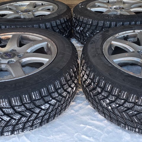 Volvon vanteet ja renkaat. Hyvässä kunnossa ja siistit. Jako 5 x 108 keskireikä 65,1mm. Kumit on Michelin nastat 215/55R16. Ei uudet, mutta hyvät! Löytyy Oulusta.