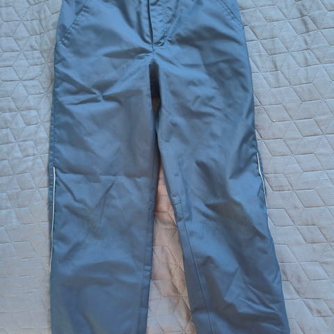 Myydään tummansiniset Didriksonin vk-housut kokoa 120. Lahkeiden pidennykset avattu, vastaa 122/128. Paljon käytetyt, toisessa polvessa reikä, ei paikattu, katso kuva.