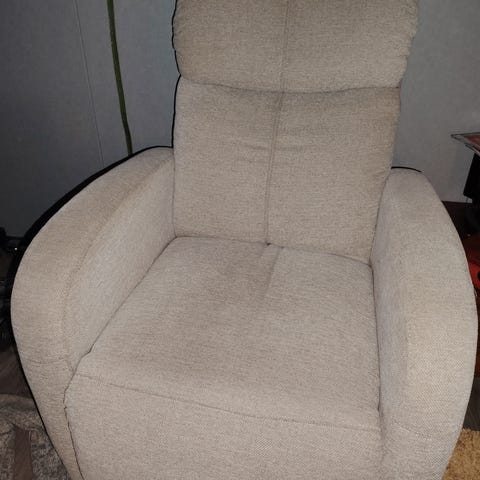 Erinomaisen siisti ja mekanismiltaan moitteettomasti toimiva recliner. Kaikki pinnat on käyty tekstiilipesurilla läpi. Tukevatekoisen nojatuolin syvyys avattuna on 150cm. Istuinkorkeus on 51cm. Istumatuntuma on oikein hyvä ja soveltuu erinomaisesti television katseluun, lukemiseen ja rentoutumiseen. Tuoli ei sijaitse Majakan tiloissa. Soita ja sovi näyttö.